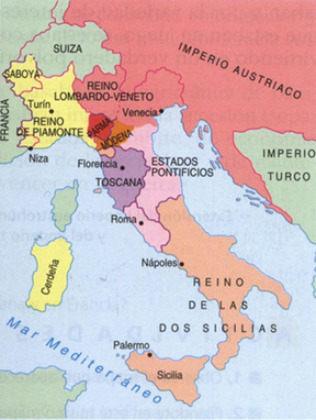 Ilustración 2: Reinos de la península italiana antes de su unificación en 1861.