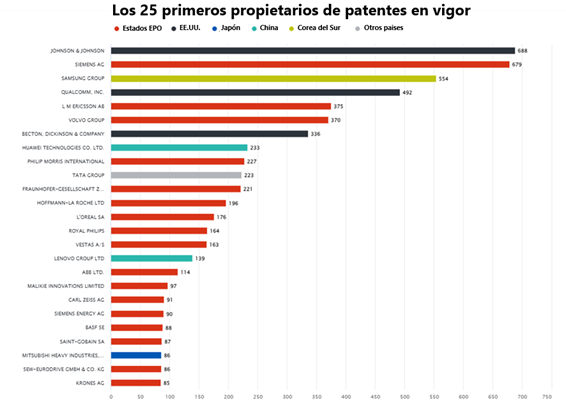 Ilustración 2: Las 25 primeras empresas con patentes en vigor.