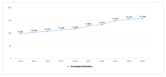 Ilustración 1:Número de solicitudes de Tecnología informática en la última década.