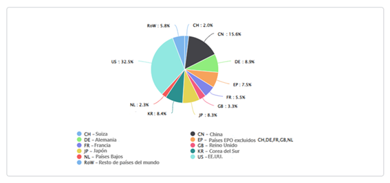 También coincide con la Tecnología médica ya tratada, que la Tecnología informática tiene una hegemonía clara de Estados Unidos con un 32,5%, algo menor en este caso.