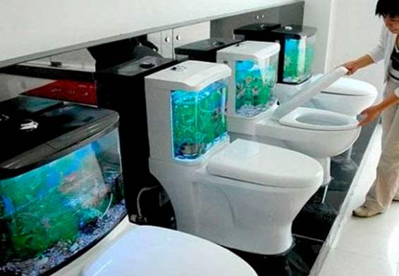 En primera posición medalla de oro, y que deberían hacerle una estatua en todas las plazas públicas del mundo al que tuvo la genial idea, está el Inodoro con pecera.