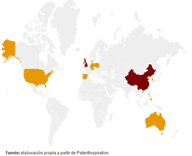 Ilustración 3.-Países de origen de solicitantes de patentes sobre COVID-19 (realizado por el VINTEC).