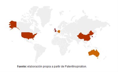 Para concretar cuántas solicitudes hay de patentes vinculadas con el COVID-19, destacamos los datos realizados por el equipo técnico del Programa Nacional de Vigilancia Tecnológica e Inteligencia Competitiva (VINTEC), Dirección Nacional de Estudios-Subsecretaría de Estudios Y Prospectiva, Ministerio de Ciencia, Tecnología e Innovación (Argentina) y cuyos autores son Esp. Ing. Miguel Guagliano y Dr. Ing. Martín Villanueva. “Análisis de solicitudes de patentes a nivel global (informe de vigilancia tecnológica): Nos indica que el informe de tendencias tecnológicas sobre COVID-19, ha sido elaborado a partir del motor de búsqueda de patentes de invención (PatentInspiration) limitándose a la búsqueda y análisis de información relacionada con solicitudes de patentes vinculadas con el COVID-19. Es importante remarcar que la cantidad total de solicitudes de patentes encontradas entre las fechas de enero a junio 2020 arrojó un total de 70 documentos, los cuales se convierten en 61 al filtrarlos por familia de patentes (una familia de patentes está conformada por las solicitudes presentadas en distintos países con una misma fecha de prioridad). Entre los países en donde se presentaron mayor cantidad de registros de patentes se destacan China, con 32 solicitudes, y Reino Unido, con 20. El resto de los países resaltados en el mapa cuentan con mucha menor cantidad de solicitudes: Australia (2), España (2), EE. UU. (3), Filipinas (1), Corea del Sur (1), España (1), Portugal (1), Polonia (1), Dinamarca (1) y Alemania (1). Los tres solicitantes líderes son Zaki George Abdelmessih (3), Virustatic LTD. (2) y Hope Paul Francis (2). Estos dos últimos presentan las mismas solicitudes en conjunto.